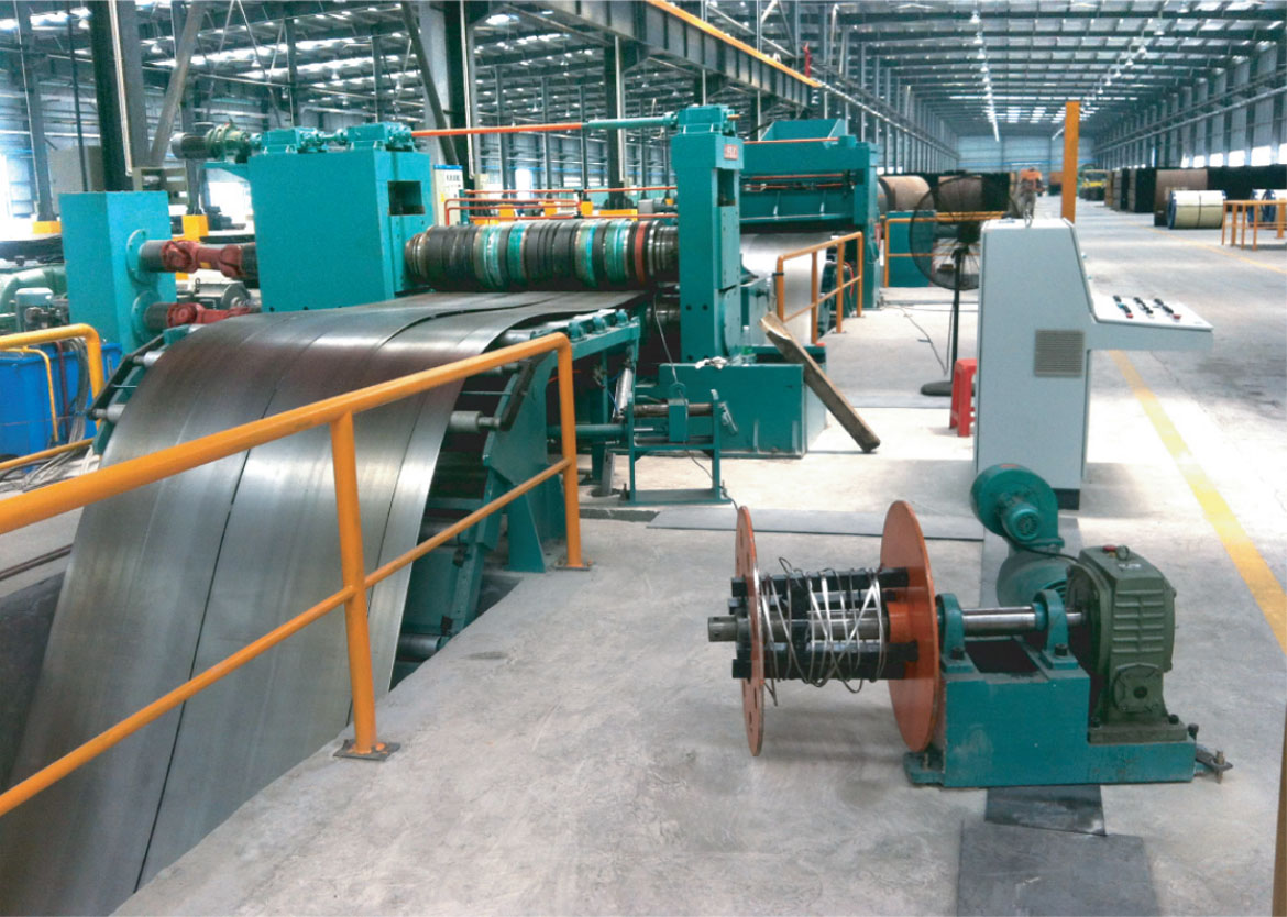 該生產線是將一定寬的金屬卷料中厚板寬方向縱剪成多條所需寬度的帶材并進行成品工件的卷取的成套設備。