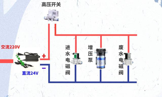 建議選擇24V-4/5A的電源適配器和增壓泵,保證每分鐘的出水量足夠。